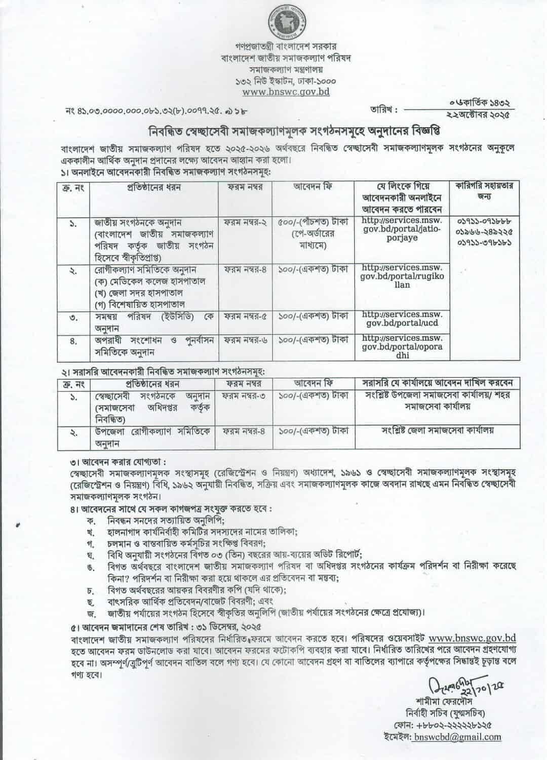 ২০২৫-২৬ অর্থ বছরে জাতীয় সমাজকল্যাণ পরিষদ অনুদানের আবেদন বিজ্ঞপ্তি