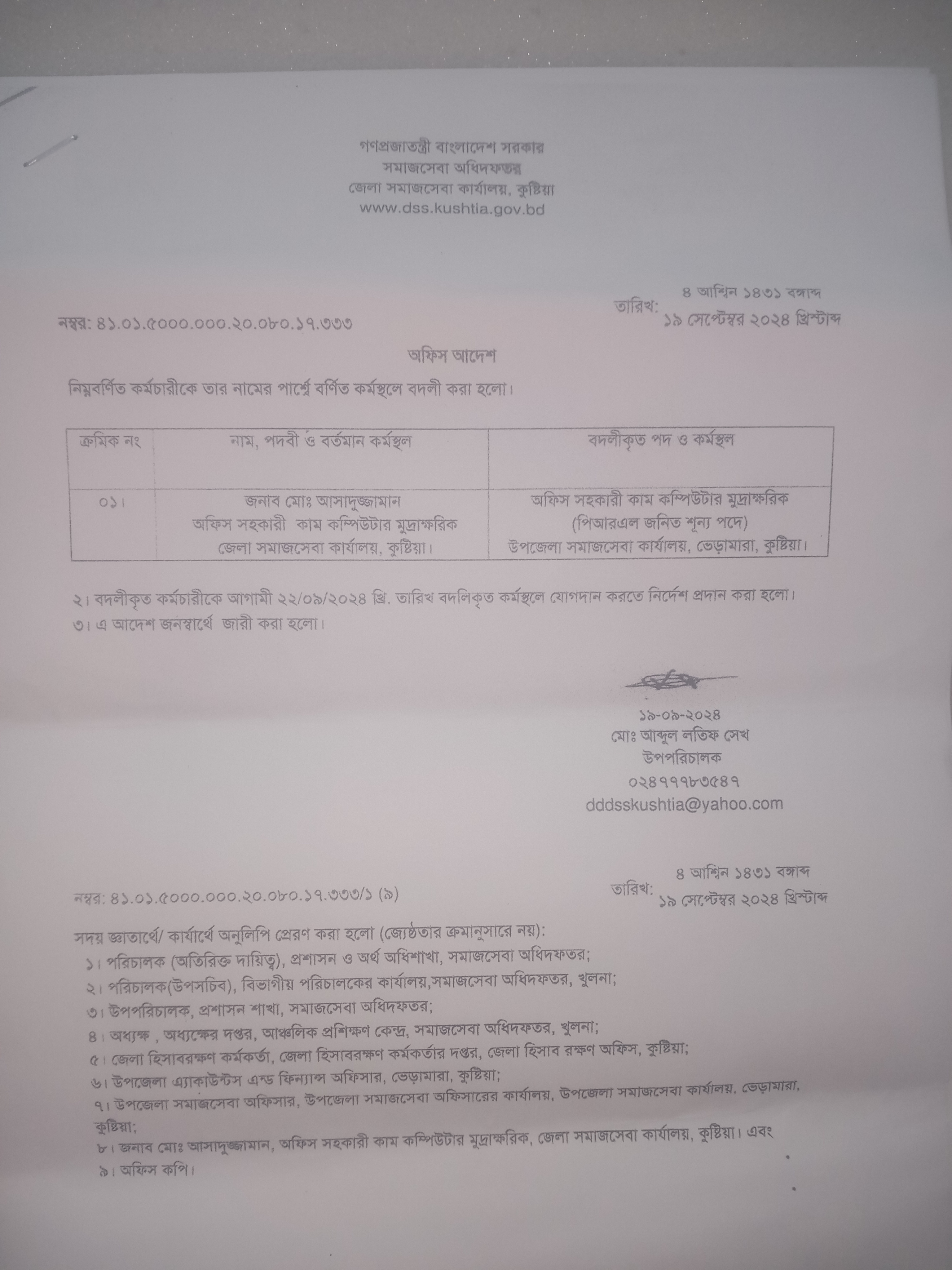 অফিস সহকারী কাম কমঃ মুদ্রাঃ পদে যোগদান